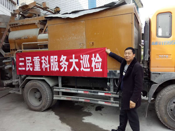 這是資陽安岳縣的蔣老板,購買三民的設備已經有三年多時間,原本做吊車生意的他在看到現場混凝土攪拌市場的巨大前景后,便經營起了攪拌泵的營生。蔣老板說以前做吊車賺錢少不說,而且每每工程完了還拿不到工錢,現在做混凝土不僅接的工程多,而且幾乎沒有欠款,短短四個月就把成本給收了回來。讓他高興的還是,近他又接了個大的河道工程,他開玩笑的說,“估計這兩個月又沒得休息了”!
