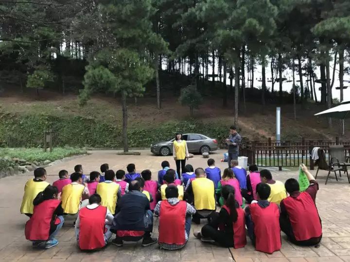 時值國慶期間,酷暑已過,正是秋高氣爽的好天氣。一大早三民團隊就出發(fā)了,在欣賞了沿途的美景之后,終于抵達了目的地。稍作休整,在教練的統(tǒng)一部署下,將成員們分成了四個小組,每個小組選出一名隊長,并為每個小組穿上了不同顏色的隊服,以及相同顏色的隊旗。一切就緒,拓展訓(xùn)練即將展開。