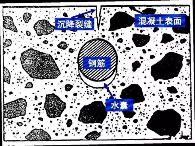在混凝土粗骨料、鋼筋周圍形成水囊,隨著水分的逐漸揮發(fā)形成空隙,從而影響混凝土的致密性、骨料的界面強(qiáng)度以及混凝土與鋼筋間的握裹力,導(dǎo)致混凝土整體強(qiáng)度的降低。混凝土泌水造成塑性收縮是一個(gè)不可逆的變形。泌水引起混凝土的沉降導(dǎo)致混凝土產(chǎn)生塑性裂紋,從而會(huì)降低水泥混凝土的強(qiáng)度。特別是泌水混凝土產(chǎn)生整體沉降,澆注深度大時(shí)靠近頂部的拌合物運(yùn)動(dòng)距離更長(zhǎng),沉降受到阻礙,如遇到鋼筋等障礙時(shí),則產(chǎn)生塑性沉降裂紋,從表面向下直至鋼筋的上方。