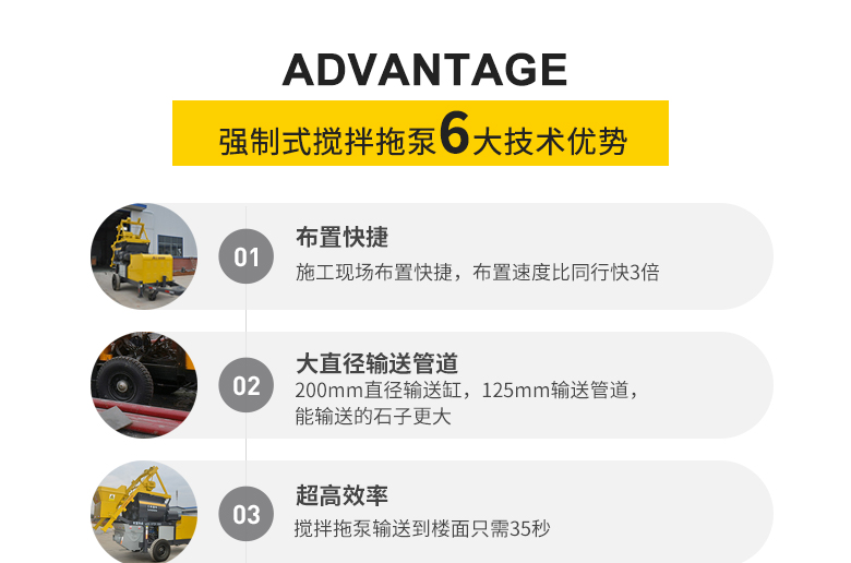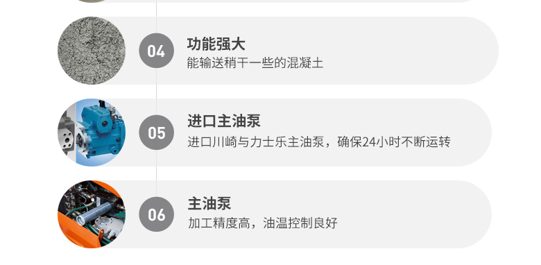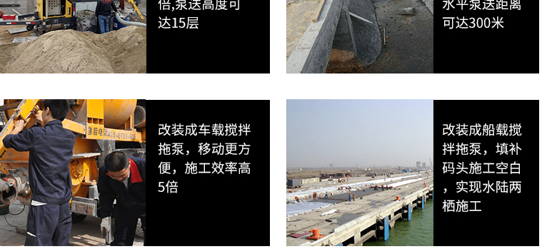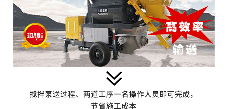 簡介:小型泵車:強制式攪拌拖泵是三民重科在本公司滾筒式攪拌拖泵的基礎(chǔ)上研制而成的第四代產(chǎn)品,該混凝土攪拌拖泵創(chuàng)新地采用了攪拌速度快、混凝土攪拌質(zhì)量好的強制式雙臥軸攪拌,是一種小型混凝土泵車