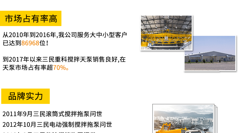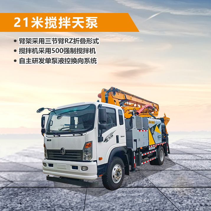 簡介:21米攪拌天泵車是三民重科研發一款新型的混凝土泵車,由強制攪拌機與混凝土泵車組成的,可以實現自動上料、攪拌、泵送為一體,真正做到了機械化施工,此泵車適用于中小型施工作業,填補小型,野外,分散等混凝土施工的空白,采用的是500強制攪拌機。