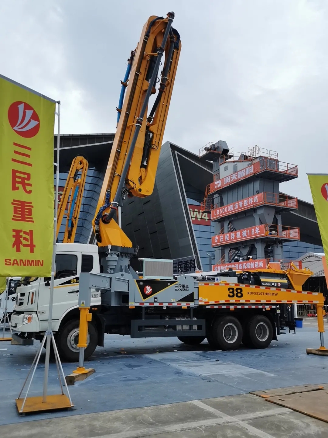 展會現場A8-38米攪拌臂架泵車側面實拍